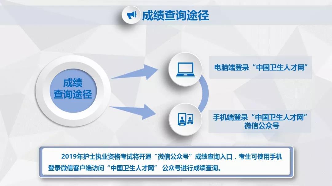 2019年护士资格考试成绩可以通过中国卫生人才网官网或者中国卫生人才网微信公众号2种途径查询!