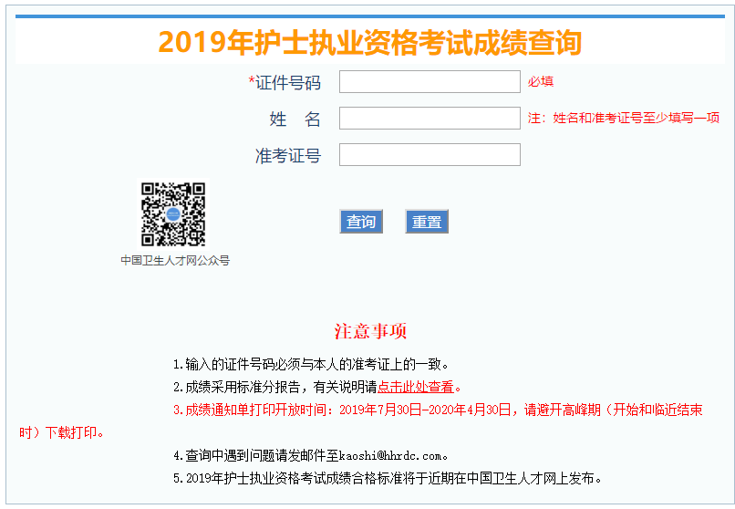 2019年护士资格考试成绩查询入口: http://erquery.21wecan.com/hk2019cf/queryRDataAction.do?method=initExam