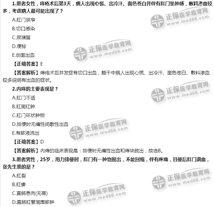 注:内痔的四期即一便血,二自行,三托回,四长期。