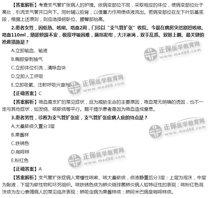 以上就是医学教育网小编整理的支气管扩张,2021护士资格考试中还会出现很多疾病护理问题,想要了解更多高频考点请关注医学教育网!