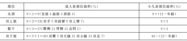 2.成人体表面积中国九分法