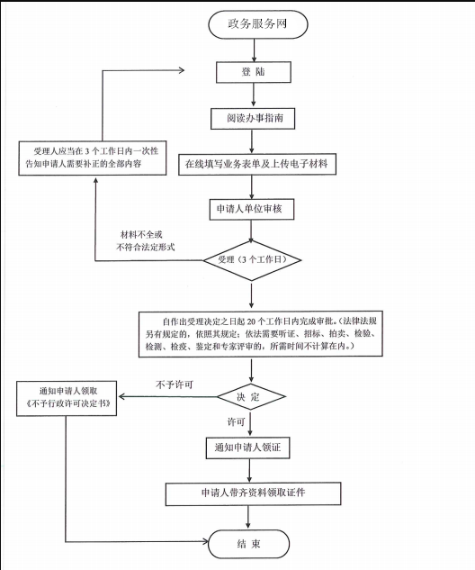 登录“政务服务网申办系统”申请人阅读办事指南,在网站下载本事项所涉及的申请书格式文本和示范文本,在线填写业务表单及上传电子材料。