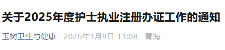 青海玉树2025年度护士执业注册办证工作证书发布,正保医学教育网小编整理内容如下: