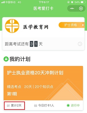 第二步:根据相应提示即可参加“医考爱打卡”活动免费领取2019护士资格《仿真模拟卷》 。