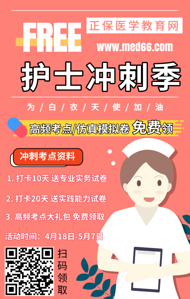 参与护士资格“医考爱打卡”活动,助你坚持复习,快速冲刺**,更有《仿真模拟卷》和高频考点秘籍大礼包免费赠送!