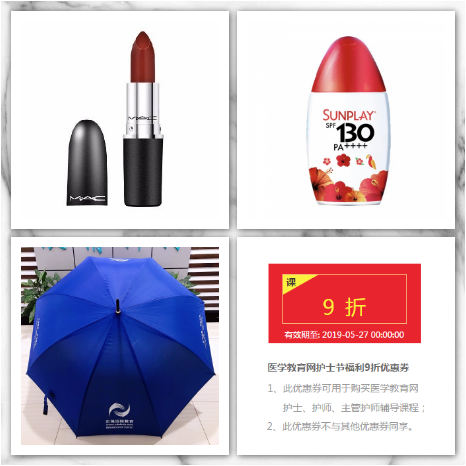 MAC口红、防晒霜、雨伞、医学教育网2020护士、护师、主管护师课程优惠券都给各位安排上了,是不是很贴心?你的需求,我们都懂。
