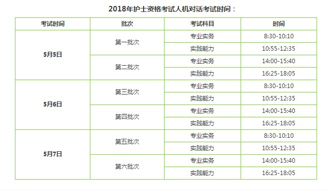 根据全国护士执业资格委员会发布的公告,2018年护士考试全面实施人机考试,时间定于5月5-7日举行,每半天为一个轮次,分为6轮依次进行。考生将随机分配至其中一个轮次,参加专业实务和实践能力两个科目的考试。具体时间如下: