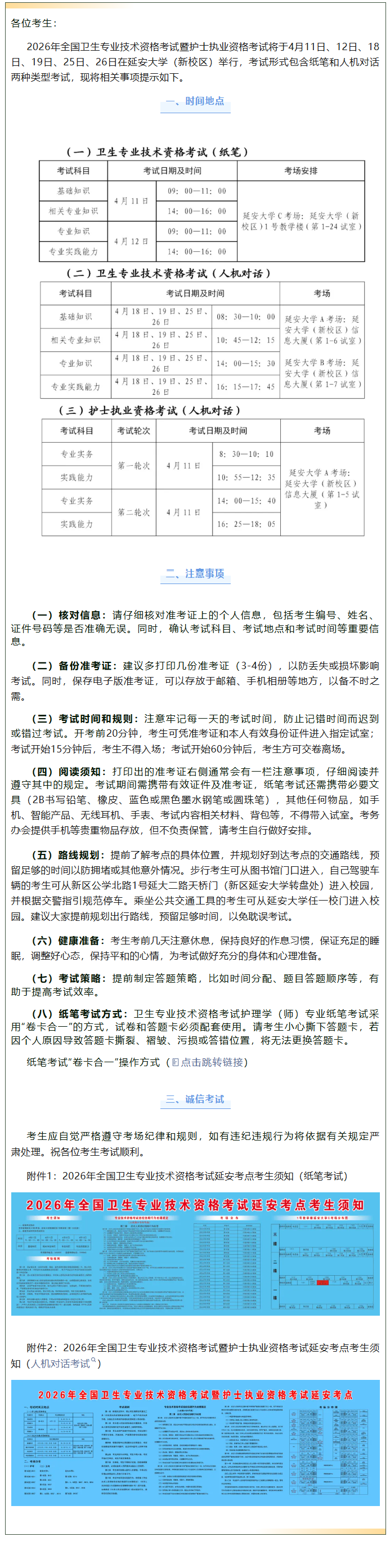 2026年全国卫生专业技术资格考试暨护士执业资格考试延安考点温馨提示