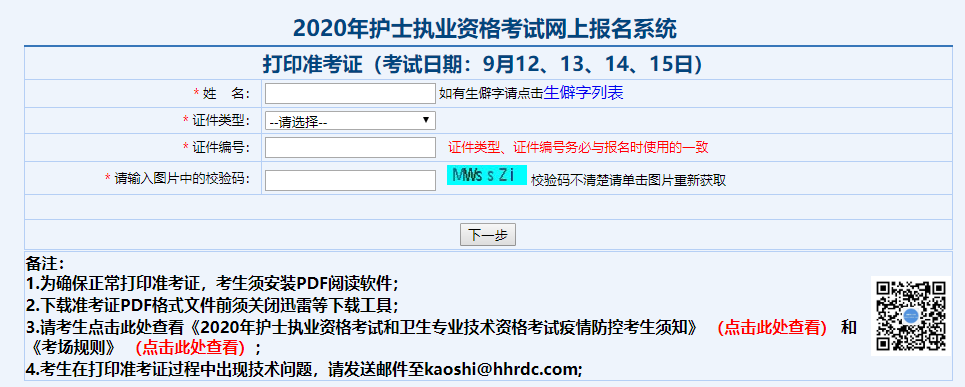 2020年护士资格考试准考证打印时:2020年9月1日--9月15日