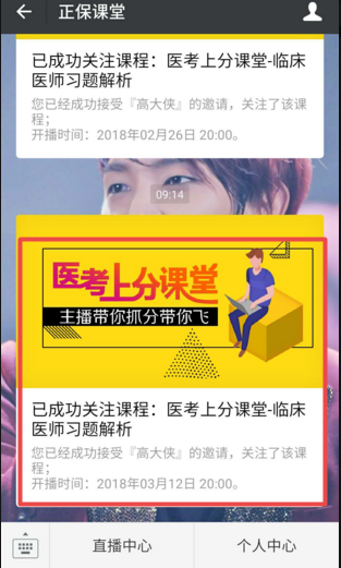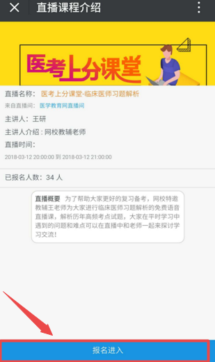 第三步、点击底部“报名进入”,直播开始前会有微信消息通知: