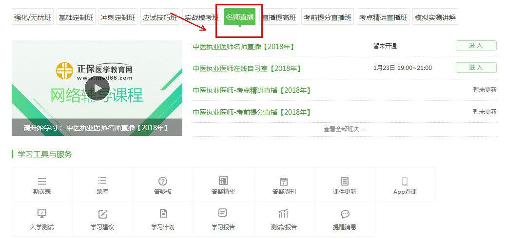 在医学教育网首页://www.med66.com/登录账号后进入“我的网校我的家”点击“老师直播”有直播课的列表页;