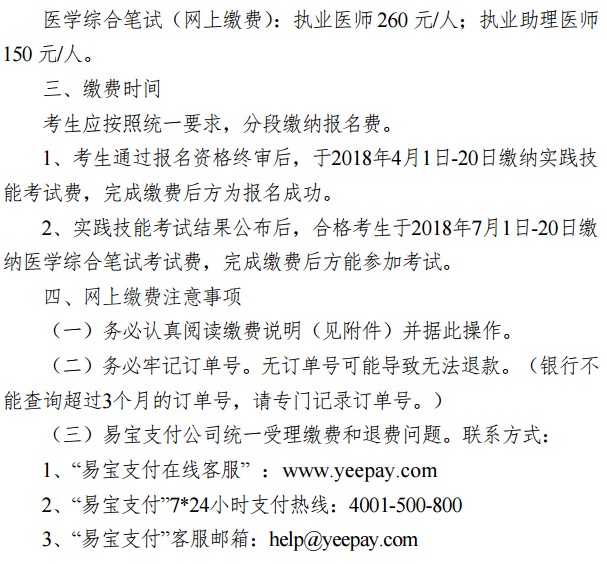 附件下载:医师资格考试网上缴费说明