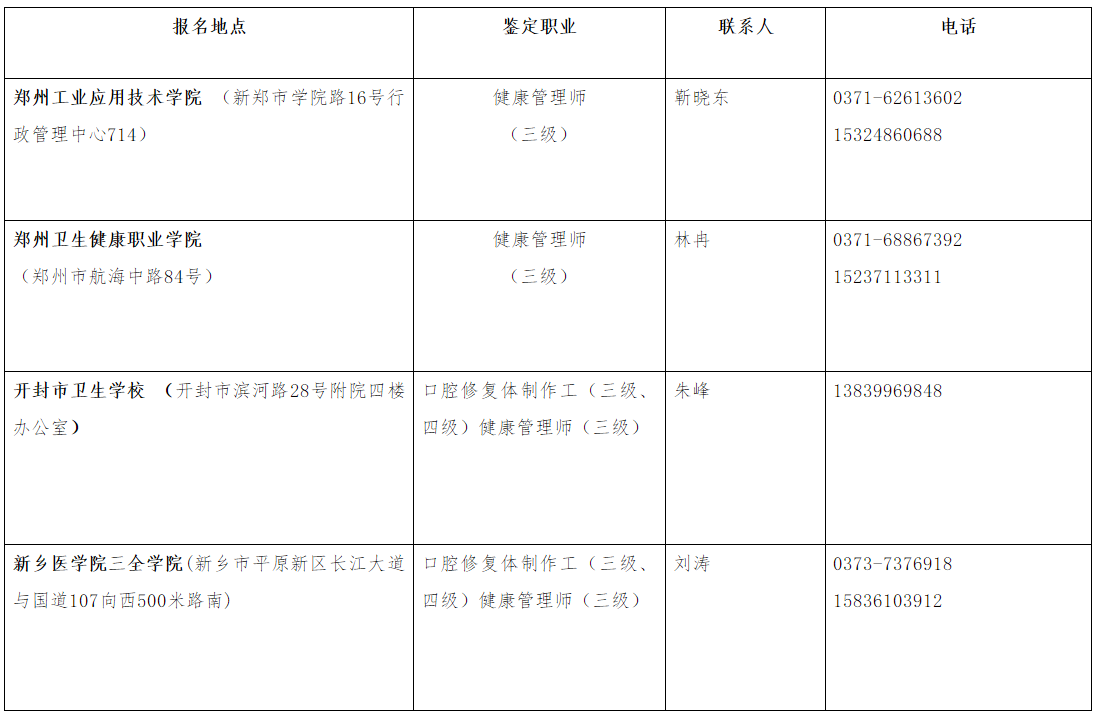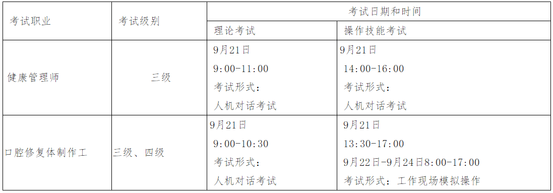 健康管理师(三级)、口腔修复体制作工(三级、四级)