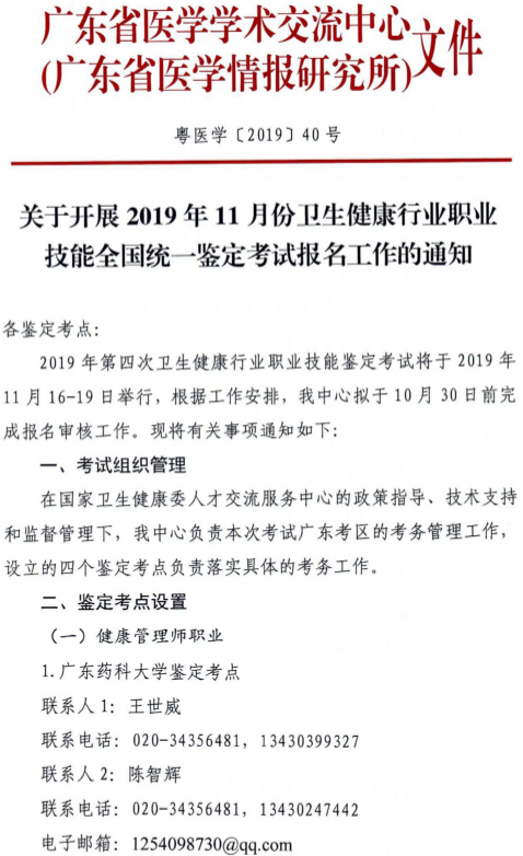 以上就是医学教育网关于广东省2019年第4次卫生健康行业职业技能全国统一鉴定考试报名工作的通知的相关介绍,希望能够帮助到大家,更多资讯尽在医学教育网!
