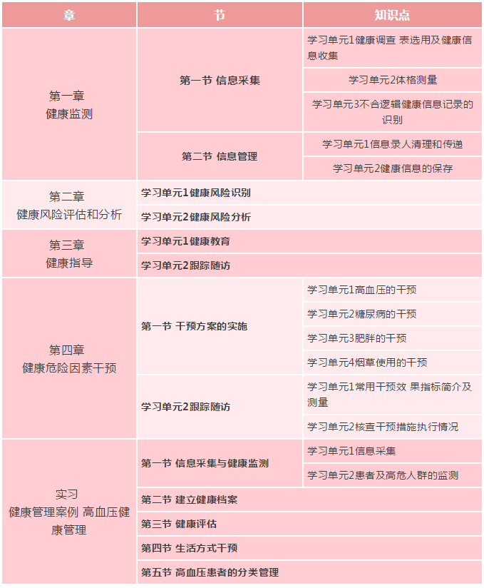 以上就是我为大家整理的2019年健康管理师三级专业技能考试大纲,还请大家多多关注医学教育网,我们会随时更新更多更好的有关医学知识、医疗招聘及考试辅导等相关信息。敬请期待!