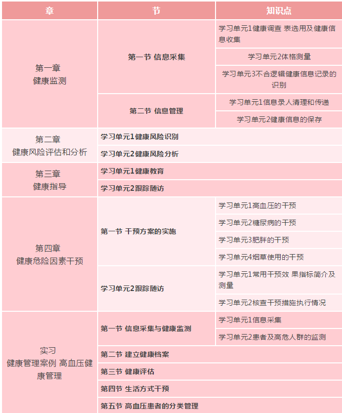 以上就是小编为大家整理的2019年三级健康管理师考试大纲,还请大家多多关注医学教育网,我们会随时更新更多更好的有关医学知识、医疗招聘及考试辅导等相关信息。敬请期待!