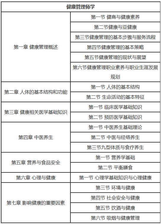 以上就是小编为大家整理的2019最后一次健康管理师全国统一鉴定考试理论知识大纲,请大家多多关注医学教育网,我们会随时更新更多更好的关于医学知识、健康管理师考试辅导等相关内容,敬请期待!