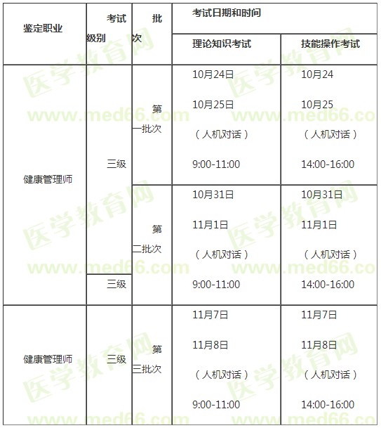 2021年河南三级健康管理师考试时间及形式尚未确定,请参考2020年官方安排: