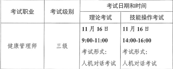 三级健康管理师考试在每年4月、6月、9月及11月的第三个周末,具体以当地卫健委公布为准。目前2019年第四次健康管理师考试时间已公布,为11月16日。