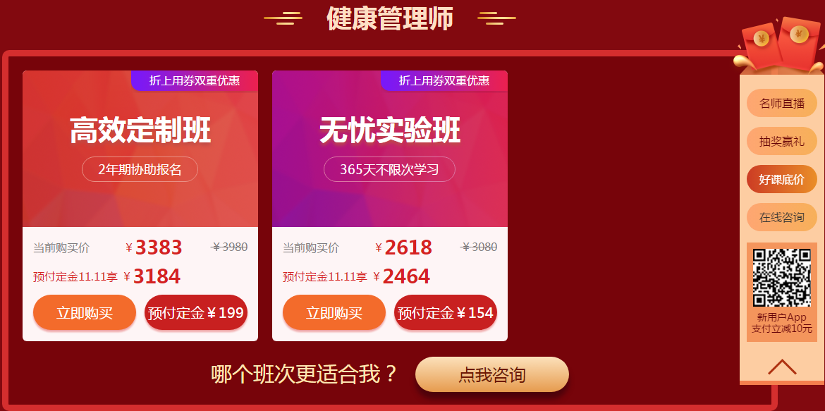 你的购物车都准备好了吗?网校优惠活动的各种玩法都get了吗?下面小编就来手把手教你畅享医学教育网“爽”11狂欢季,最低价抢购健康管理师辅导课!