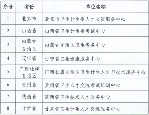 第二批卫生健康行业省级职业技能鉴定指导中心名单