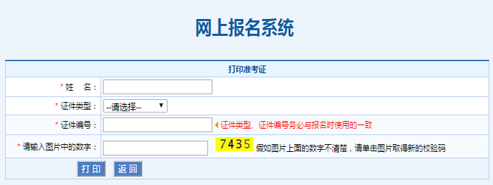 3、在打印准考证界面输入您的个人信息,点击【打印】即可。