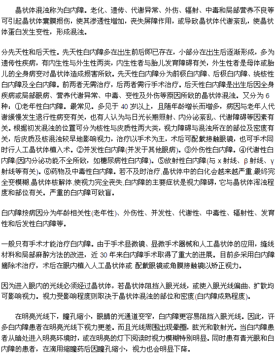 以上内容是由医学教育网小编为大家编辑整理的“对于白内障您了解有多少”。还请大家多多关注我们医学教育网,里边会有更多更好的关于各类疾病的相关信息。