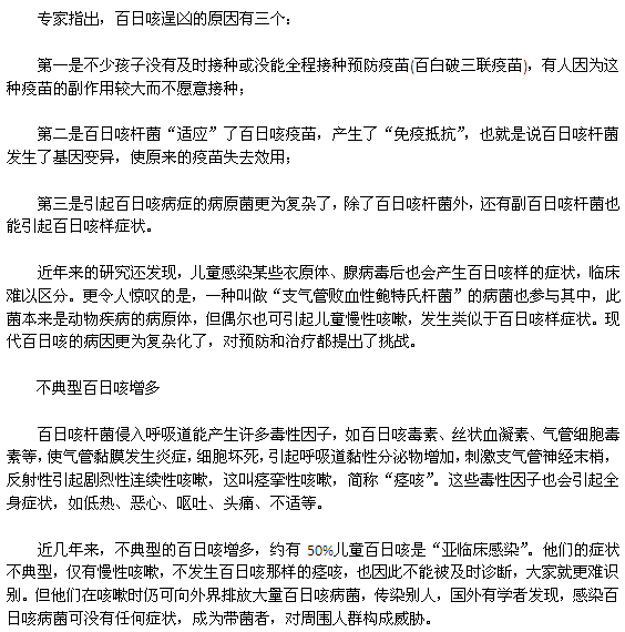 如今,百日咳这种呼吸道传染病仍然在逞凶,全世界每年发生百日咳2000万~4000万例,其中35.5万死亡。有报告说,全世界每秒钟就有1名5岁以下儿童死于百日咳。那么百日咳逞凶的原因究竟有什么呢?