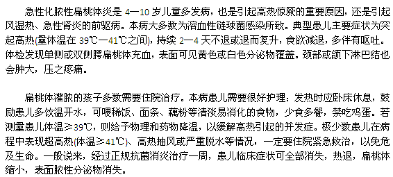上面是对小孩得了化脓性扁桃体炎进行的讲解,希望家长在日常日子中对孩子多加留意,急性化脓性扁桃体炎虽然看上去是个小病,可是很有可能会更严峻,引起其它疾病,一旦确诊要及早进行医治。