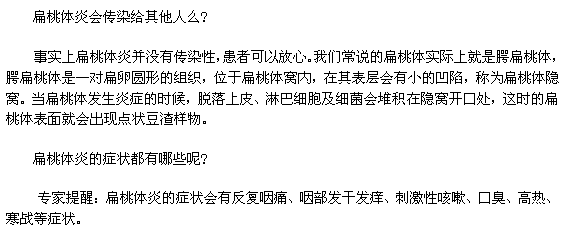 有时候很多疾病的发生就是因为小的细节注意不够才导致的。扁桃体炎就是在这种情况下出现的,于是有人开始对扁桃体炎表示出了担忧,认为扁桃体炎可能会有传染性。那么,扁桃体炎会传染给其他人么?针对这个问题,小编给您做一下介绍。