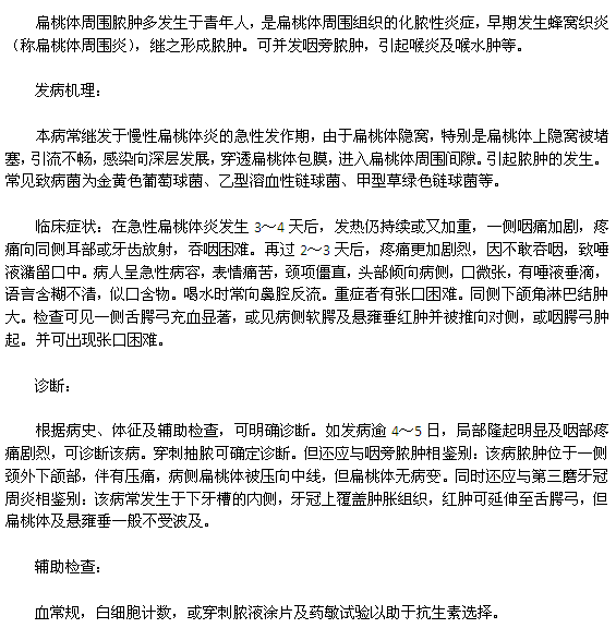 扁桃体发炎在我们的生活中非常多见,有些人很容易患上这个病,而且反复发作,非常困扰,而扁桃体发炎之后可能会出现扁桃体周围脓肿。那么这是怎么一回事儿呢?下面小编带您了解下: