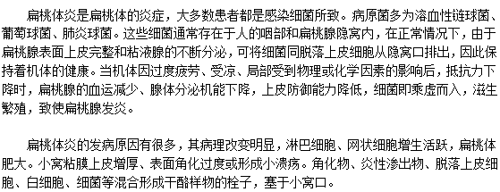 以上就是关于引起扁桃体炎的原因的介绍。大家都清楚,要想有效的预防扁桃体炎的发生,就需要对扁桃体炎的病因有一定的了解。既然大家知道了关于导致扁桃体炎的原因,那么在平时的生活中就要做好相应的预防工作了。
