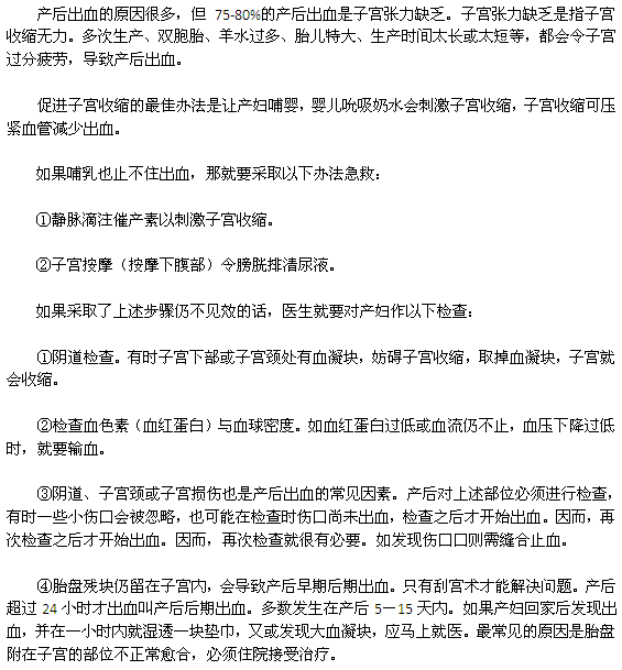 女人生孩子的过程是很危险的,孕妇在生产完以后,很容易出现产后出血症状,关于这一点希望引起各位孕妇以及家人的重视,今天想为大家介绍的是产妇产后出血应该怎么办?现在请看下面的具体介绍。