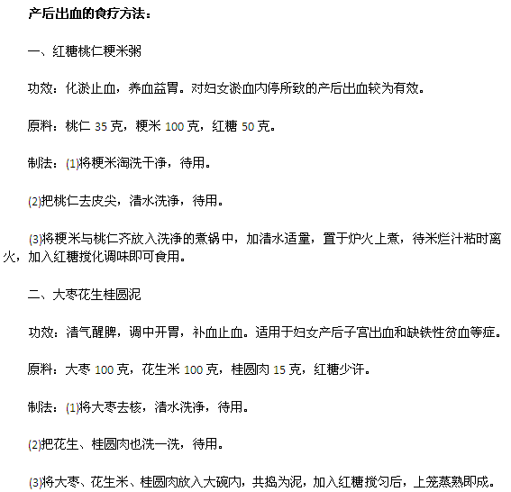 具体关于产后出血的食疗方法需要与医生进行沟通,不要随便的乱吃,以上仅供参考,因为每位妈妈的体质不一样,在饮食方面也有所不同。真心的希望我们的分享能够给您提供帮助,在此祝您身体健康。