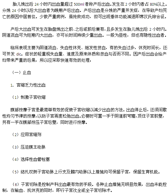女人生孩子的过程是很危险的,孕妇在生产完以后,很容易出现产后出血的症状,关于这一点希望引起各位孕妇以及家人的重视,今天想为大家介绍的是产妇产后出血以后怎样进行正确处理,现在请看下面的具体介绍。