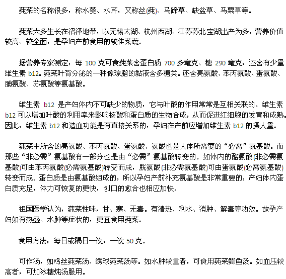 孕妈妈的饮食对于宝宝的健康非常有影响,那么孕期吃什么对宝宝最好呢?想必这是大家都很关心的问题,所以今天我们的小编就为大家简单的介绍一下,孕妈妈多吃莼菜可增强造血功能。
