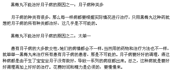 黑梅丸真能治好月子病吗?很多人都听说黑梅丸可以治疗月子病,可是对于月子病这么严重的病,区区一黑梅丸怎么可能治好,下面小编就给大家说说黑梅丸不能治好月子病的原因。
