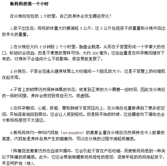 怎么样,大家听了以上小编的介绍后现在对于分娩后的1个小时是怎样的这一问题应该了解一些了吧,所以我们建议女性朋友们应该注意以上几点哦,另外准妈妈们一定要注意运动,合理饮食哦。
