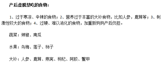 小编提醒大家,在为新妈妈准备食物时,有些食物虽然富含营养,口味鲜美,但是对产妇身体恢复不利,不宜使用。尤其是产后虚脱的新妈妈,更应该注意饮食禁忌。为了让产妇能尽快恢复体力,产妇也不要长时间卧床休养,适当的活动更利于身体的恢复。