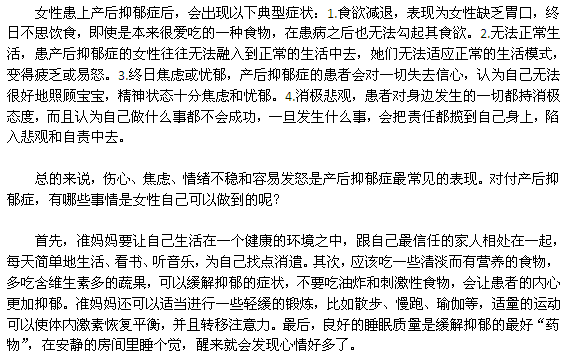 产后抑郁症是一种常见的女性精神障碍疾病,许多女性在产后会出现孤独、烦躁、自责等情绪,研究表明,大约有70%的女性在产后都会出现不同程度的抑郁症,这个数字随着经济的发展和生活水平的提高会逐渐增长。产后抑郁症的症状有哪些?我们来了解一下。