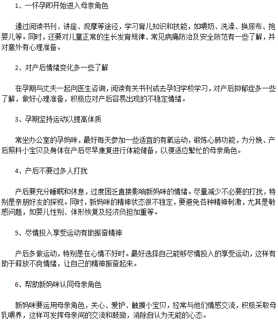 如果产妇在产后出现一些心理负担,如不及时疏导,很容易发生心理障碍。出现了这种抑郁情绪,除了不利于家人的相处,还会影响正常哺乳,甚至影响孩子的生长以造成严重的后果。因此,产妇应保持健康的心态,从生活中寻找乐趣,做一个健康快乐的妈妈。