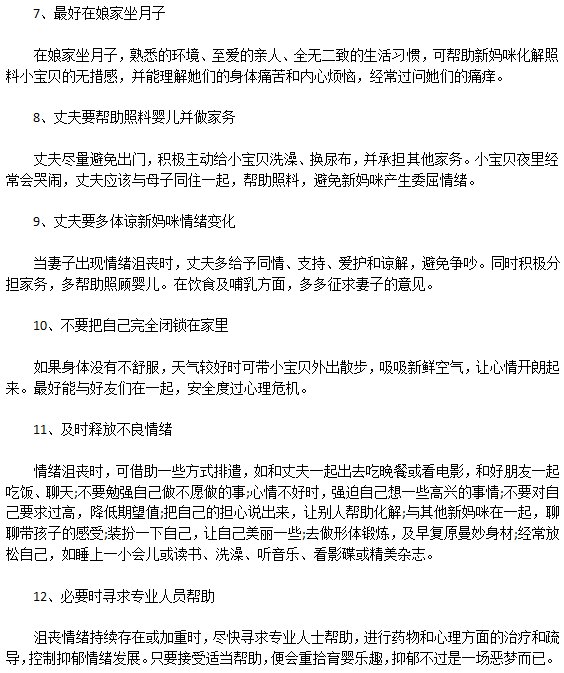 如果新妈妈在产后得了抑郁症,这不仅会影响下奶,而且还会影响胎儿,那么针对这种情况,应该如何解决产后抑郁症呢?小编为大家介绍12种方法供大家参考: