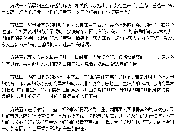 以上内容就是关于如何帮助产妇摆脱产后抑郁的详细讲解,希望大家在产妇生完孩子后一定不要忽视了产妇。请多多的出去关心产妇,对其多付出一些爱。