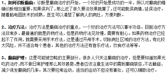 上述便是癫痫患者们十分关注的三大问题,希望大家看了以后能有所收获,每一个环节都不能马虎,患者应该早发现早治疗,找一家正规的癫痫病研究所治疗,听从医生的嘱咐,争取早日康复。广大朋友如若患有癫痫病后一定要及早治疗,以便尽快和癫痫疾病saybye~bye!