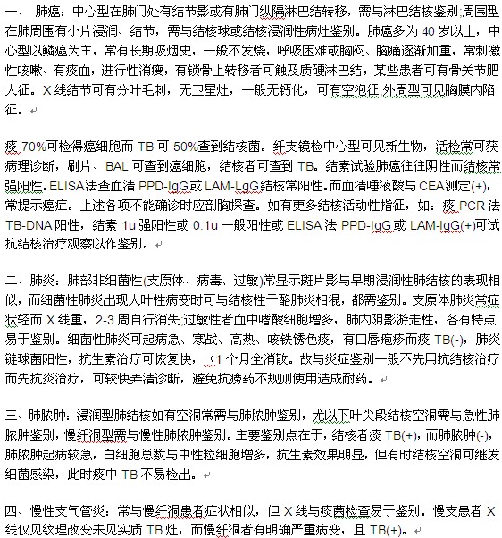 以上就是医学教育网小编为大家整理的肺结核诸多相似病症的鉴别方法,如果您身边有肺结核患者,可以把本片文章中的信息传递给他!医学教育网小编祝大家身体健康!