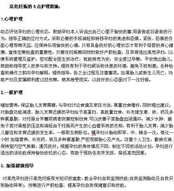 孕妇在怀孕期间最怕的就是高危妊娠,因为它在妊娠期会对孕妇及其胎儿带来一定的危害,严重时还会危及孕妇或者胎儿的生命。医学教育网小编就特地为大家编辑整理了,高危妊娠的5点护理措施都是什么的相关内容,希望对大家有所帮助。