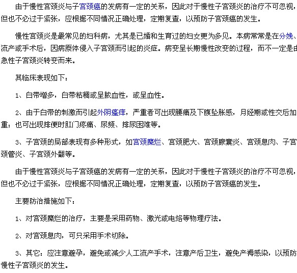 慢性宫颈炎的临床表现是什么?主要防治措施有哪些?如果您或家人朋友患了慢性子宫颈炎,相信这篇关于慢性宫颈炎的临床表现及主要防治措施的文章会对您有帮助。
