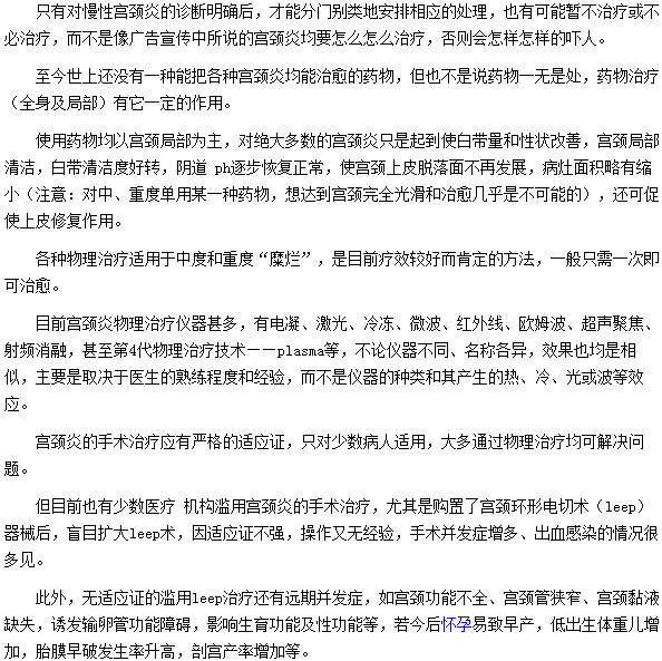 以上就是患上宫颈炎应该选择物理治疗还是手术治疗的具体内容,相信大家已经有所了解,宫颈炎会给女性带来很大的危害,平时一定要注意个人的卫生,做好防护工作,一旦发现患有宫颈炎这种疾病要及时到正规的妇科医院进行治疗。