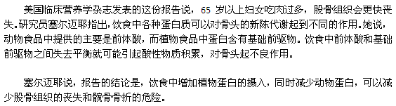 您知道吗?吃肉多而吃蔬菜少的老年妇女,和那些吃蔬菜多而吃肉少的妇女相比,髋骨骨折的可能性更大。想知道这是怎么回事吗?相信您看了这篇文章,您就了解了。