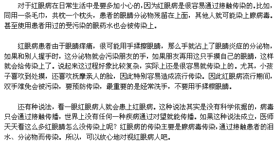 关于红眼病的传播有很多种说法,有些说法正确而有些说法是有误的,下面小编带大家了解红眼病到底能怎么样传播。